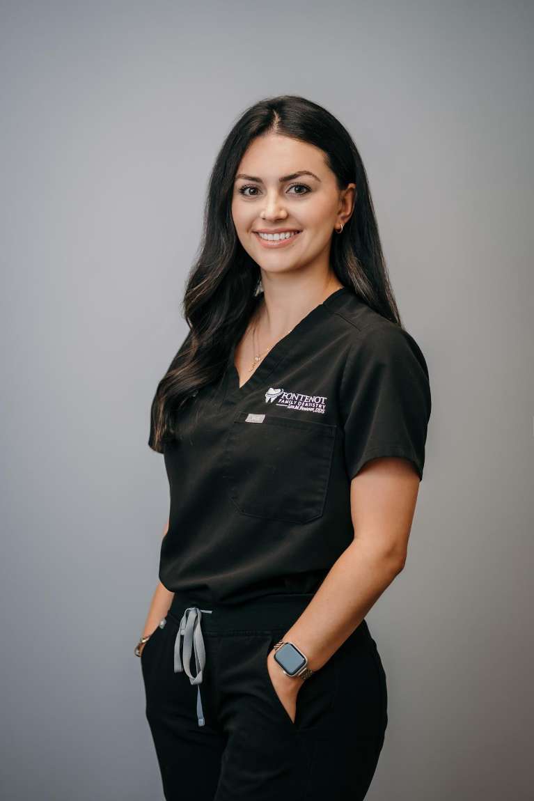 Ainsley joined Fontenot Family Dentistry 2023 as an Expanded Duty Dental Assistant. She attended Alexandria Dental Academy in 2019. She works along Dr. Porter and enjoys making her patients feel comfortable and confident. She strives in educating and helping her patients smile again!